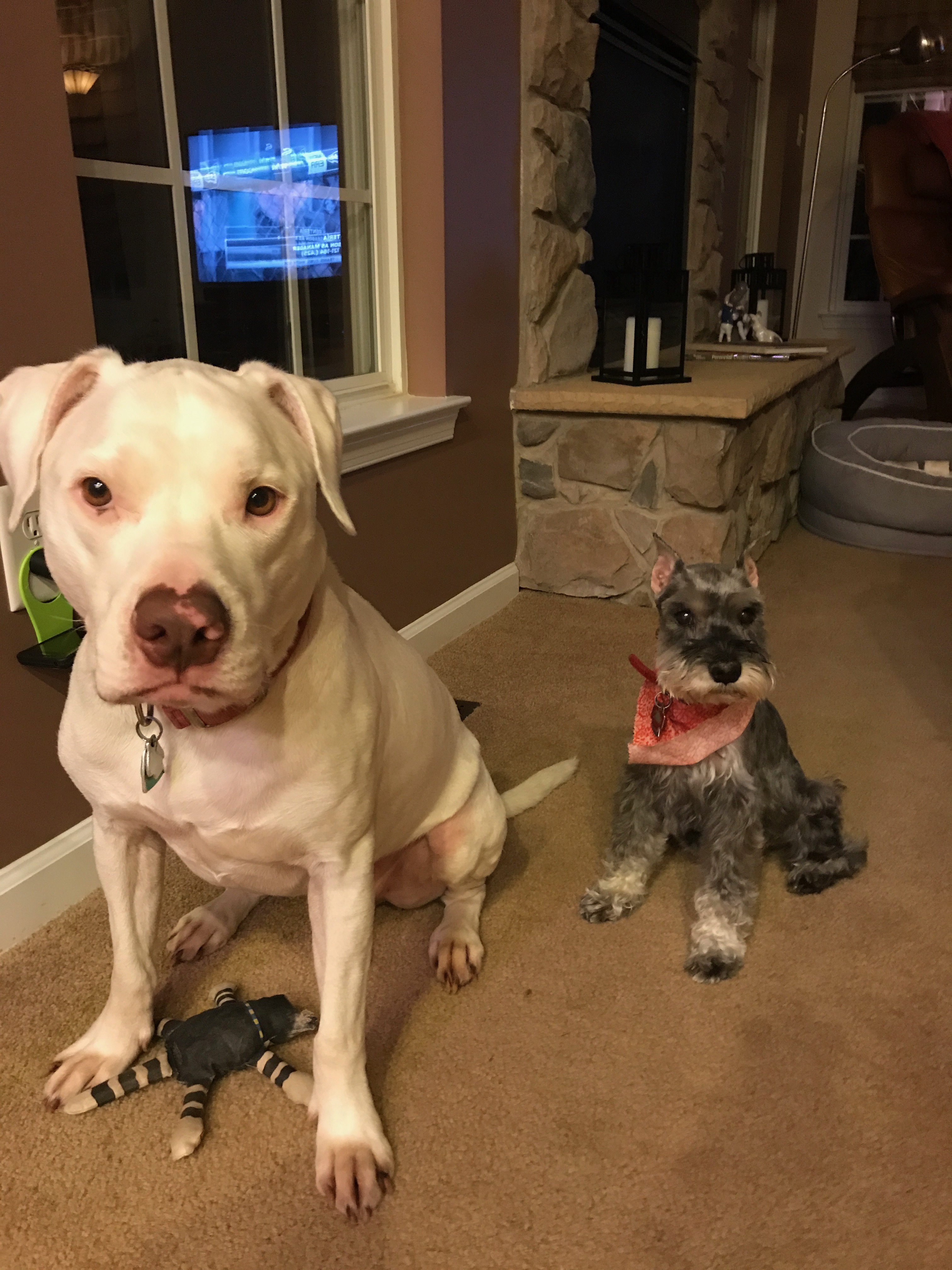 Each dog has distinguishable and unique personality characteristics, but the breeds also provide some commonality. We’ve had three Miniature Schnauzers, one Boxer, and an American Bulldog over our nearly 35 years of marriage. I grew up mostly with Boxers. There was a Miniature Poodle and a few others during my youth, but it was almost always a Boxer. They were: Bos’n, Tanya, and Hush, and a couple of others for short times as well. After I left home, my parents continued with Lucy and Emma. Somewhere along the way, my parents stumbled upon Pugs, which I’ve never taken much of a liking to.