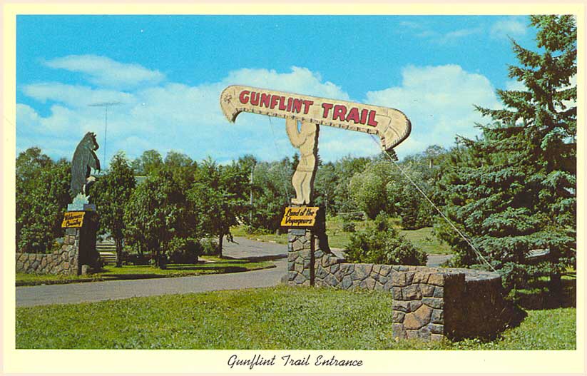 The Gunflint Trail used to be a footpath from inland lakes to Lake Superior. It is now County Road 12, a fifty-seven mile paved road from Grand Marais to the BWCA. Our plan to get that fifty-seven miles from Grand Marais? Hitchhike. No lie. Yup, teenaged brain. We figured it would be easy! As you might expect for four guys with gear – easy, right? What we got was a wonderful, sunny, and HOT day that early June. Oh, and we found those mosquitoes and no-see-ems! I think we hiked nearly half-way up the trail before getting several rides in the back of pickup trucks. We ended up splitting up, so it was Jim and I arriving at the Gunflint Lodge long after Pat and Doug.