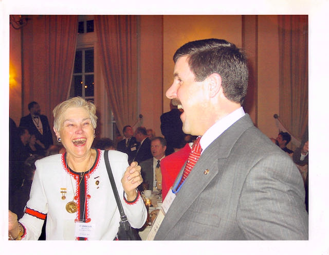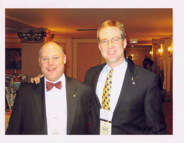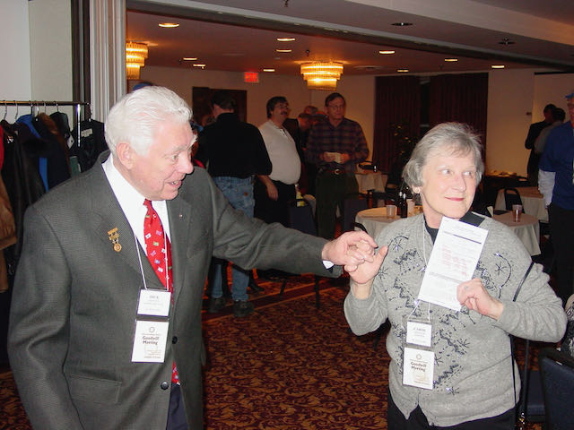 Sometime after dinner and before dessert, the real magic started. The floor was opened for stories, jokes, or whatever anyone wanted to bring up. My dad, Dick Grayson, always stood up to tell his latest joke. At some point someone (usually Bob Knox) would shout out, “Number 9!” Others would then join in, “Yes, number 9!” Newcomers would typically just look around wondering what was going on. After some rumbling back and forth, it became apparent that they were calling for my dad get back up to tell a specific joke. There were two stories/jokes that my dad seemingly told every year. Both were relatively long “jokes,” and each involved significant animation by my father. It always started by Knox or someone else yelling a number. You could count on hearing either “The Brigadier” or The Four Balls.” Most years, he would tell both, and this was clearly a highlight to all of the “regulars.”