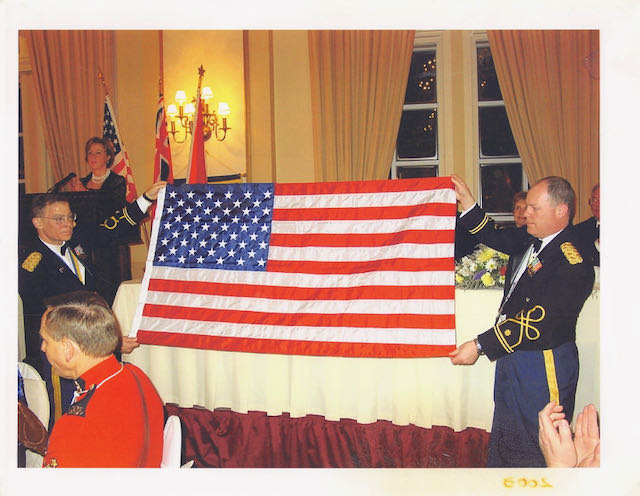 The Saturday evening formal banquet always kicked off with full pomp and circumstance. This was black tie optional. It included a bagpiper escorting the head table into the ballroom and a formal flag ceremony presented by the Canadian Mounties. A Canadian Color Guard would present the flags of both Canada and the United States and the audiance sang both National Anthems. Soon after me and our group of curlers started attending, Colonel (retired) Alan Ruvelson and I added to the ceremony by wearing our Army dress mess uniforms and presenting a United States Flag to the Winnipeg Clubs. There was always an interesting (and often famous) keynote speaker. Several times this was the sitting Rotary International President, but we had politicians, comedians, and various other famous types. All were very good!